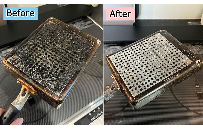 みるみるうちに焦げが剥がれて、きれいさっぱり。