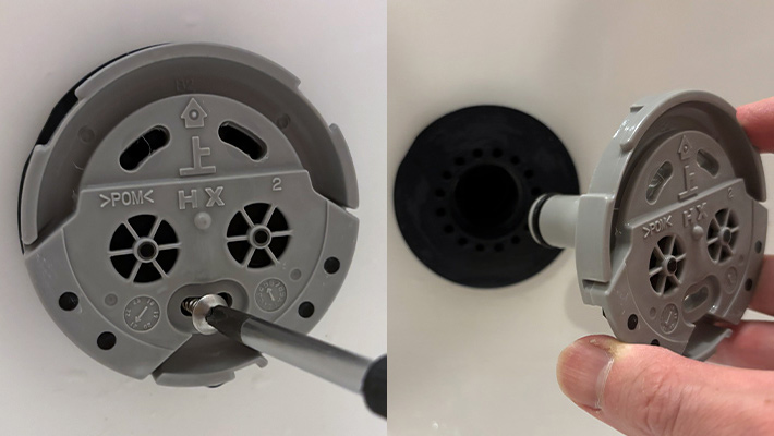 まずは、水や湯の通り道となる循環口の蓋を開けてください。