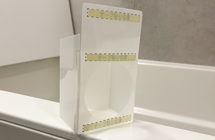 付属の両面テープを3か所につけて、循環口の円形に抜かれた穴に合わせて浴槽に貼りましょう。