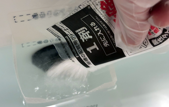 『1剤』と書かれた袋を開け、洗浄ボックス内に収まるように、中身を一気に入れて割り箸などでかき混ぜてください。