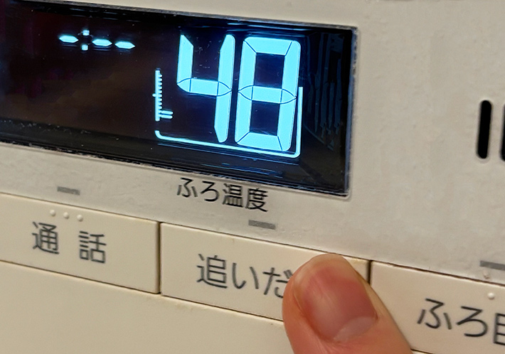 水が溜まったら、48℃程度の高温設定で、追い炊きモードをスタートさせます。