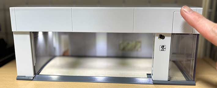 本体上部のパネルをタッチすれば、自動でシャッターが開いてライトアップ。