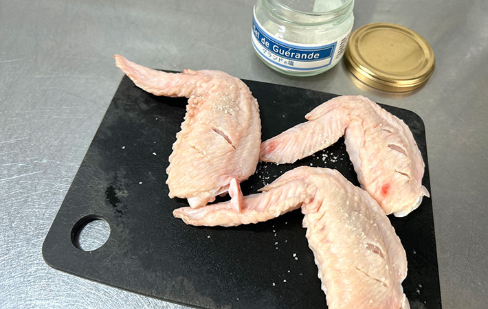 まずは鶏の手羽先に切り込みを入れたり調味料を染み込ませたりします。