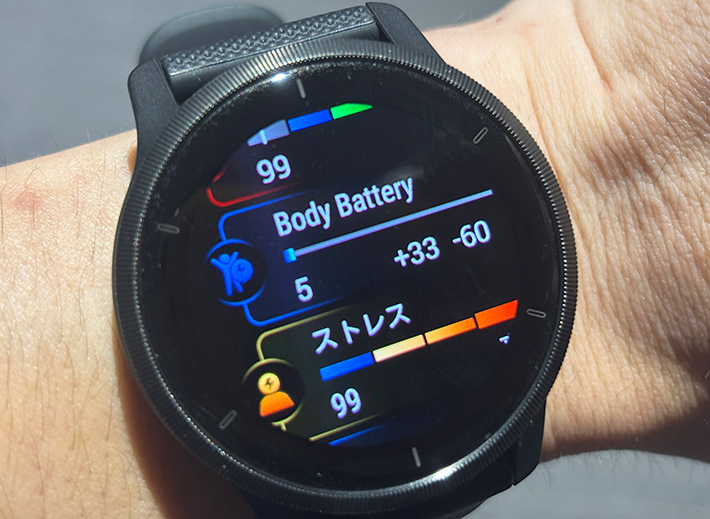 『ガーミン』のスマートウォッチを身につけておけば、ロールプレイングゲームのキャラクターみたいに残り体力やストレス値を可視化できたり、睡眠の質をレベルで教えてくれたり、目には見えないものが分かって面白いですよ!