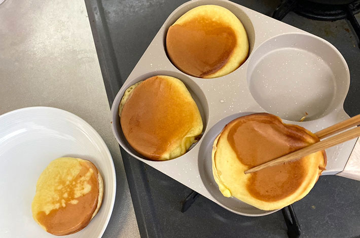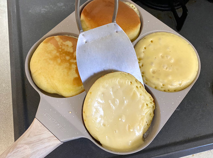 「ホットケーキミックスを均等に流せるから焼きムラが出ない」 4枚同時に焼ける『フライパン』を使った結果がこちら!