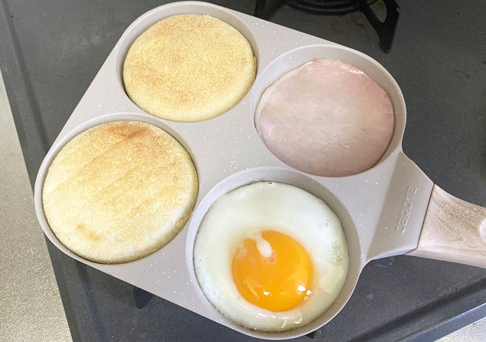 しかし、『4つ穴フライパン』を使えば、仕上がるタイミングがほとんど同じなため、4枚を焼き立てで食べられるのは嬉しいですね!