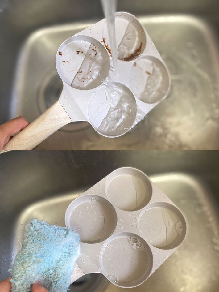 使い終わった『4つ穴フライパン』ですが、お手入れが簡単なのも購入の決め手になりますよ!