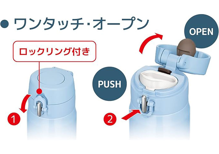 開け方はいたってシンプル。蓋のロックリングを倒して外したら、ボタンを押せばパカッと開きます。