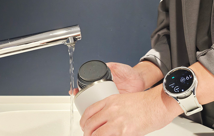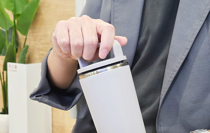 パッキンと蓋が一体化した構造になっており、従来の水筒のようにパーツを分解する必要がありません。