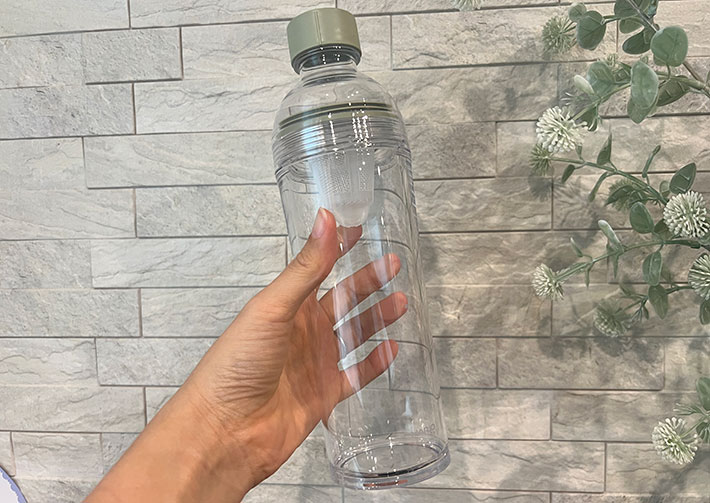 透明ボトルに茶こしをつけると、オシャレな水筒が完成!「これ使ってからコンビニ行く回数減った」「かわいいし気分上がる」