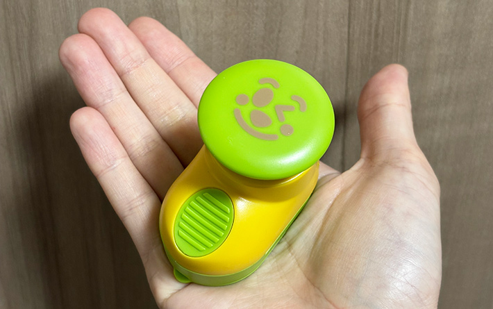 手のひらサイズの本体に、笑顔のプリントが施された、『のりパンチ』。