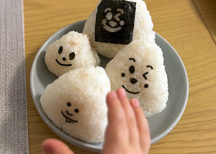 目の前に置かれた笑顔のおにぎりにすぐ手が伸びて、パクパクとおいしそうに頬張ってくれた姿がとても印象に残っています。