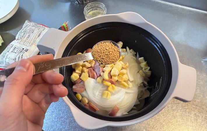 ふわっと立ち上る湯気と、コンソメのいい香りがキッチンに広がります。