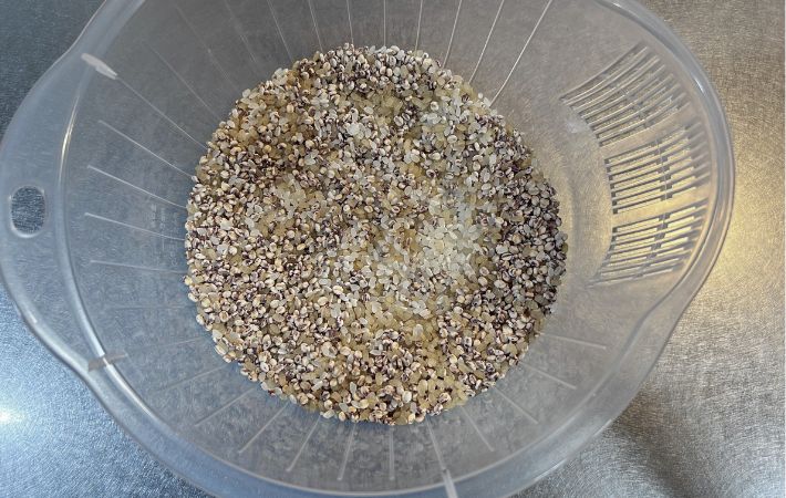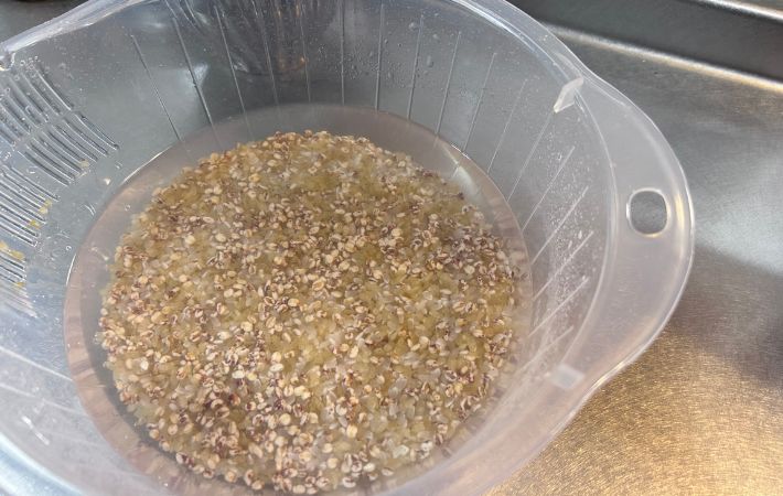 雑穀米を1.5合用意し、白米よりもやや多めの水で浸水時間をしっかり取ってから調理開始です。