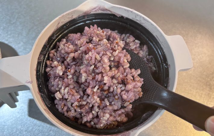 食べてみると雑穀特有のプチプチした食感もきちんと感じられ、炊飯器や土鍋で炊いた時と同じ仕上がりです。