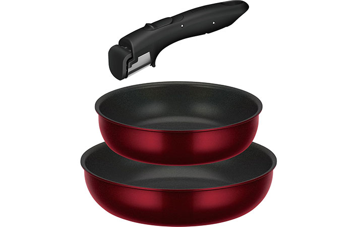 サーモス デュラブルシリーズ 取っ手のとれるフライパン3点セットDA IH・ガス対応 ディープレッド フライパンは食洗機対応 KSD-3A DR