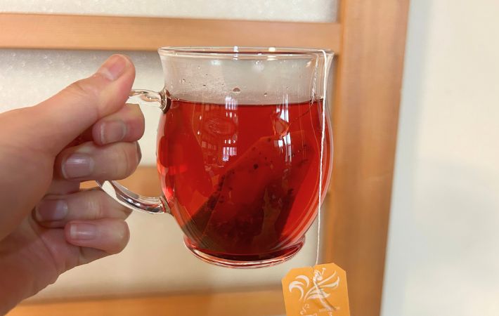 ハーブティーを注ぐと、透明度の高いガラスが見る目も華やかに楽しませてくれます!