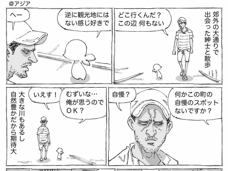 「あなたが暮らす街の自慢はなんですか?」 海外から訪れた人にこんな質問をされたら、どんな光景を思い浮かべるでしょう。 世界各地を旅行し、体験談を漫画で描いている五箇野人(@gokayajin)さんは、アジアの街角で出会っ…