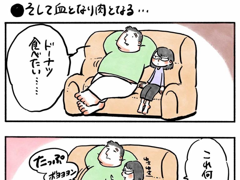 漫画家の木崎アオコ(@aokororism)さんは、夫との愉快な出来事を描き、Twitterに投稿。 仲のいい夫婦のやり取りに癒される人が多く、人気を博しています。 『そして血となり肉となる』 体格のいい、木崎さんの夫は…