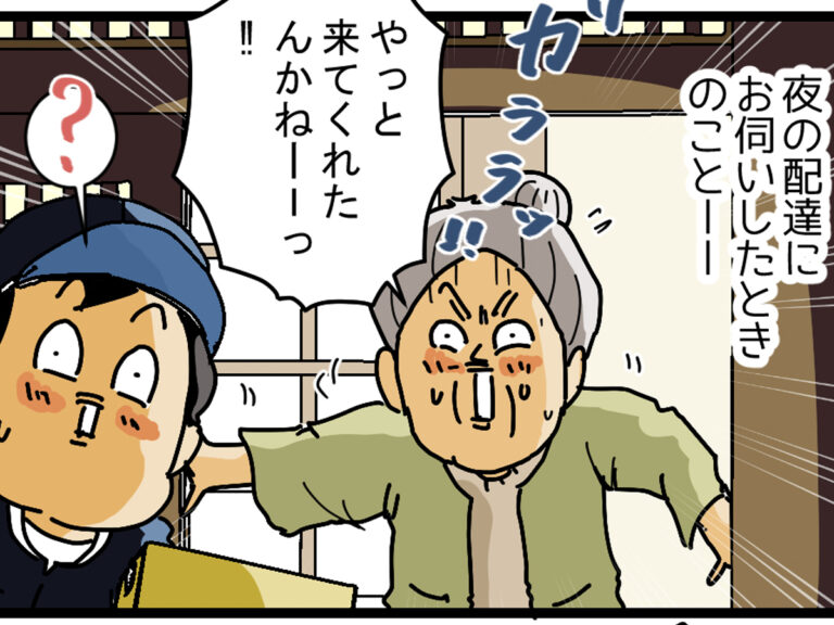 世の中には、さまざまな職種が存在しています。多くの人が働き、支え合うことで、社会は成り立っているといえるでしょう。 ゆきたこーすけさんが描いたのは、自身が配達員として働いていた頃のエピソード。 ある日の夜、ゆきたさんは荷…