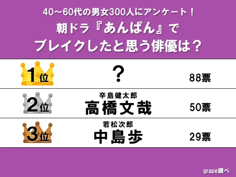 本記事では40~60代の男女300人にアンケートを実施し、『あんぱん』でブレイクしたと思う俳優について調査しました。