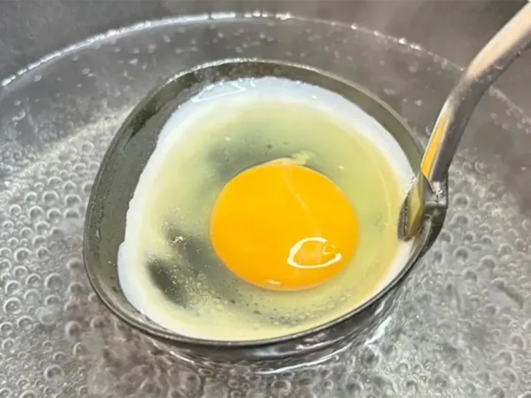 おたまを活用するだけで、誰でも簡単にきれいなポーチドエッグに仕上げられますよ。