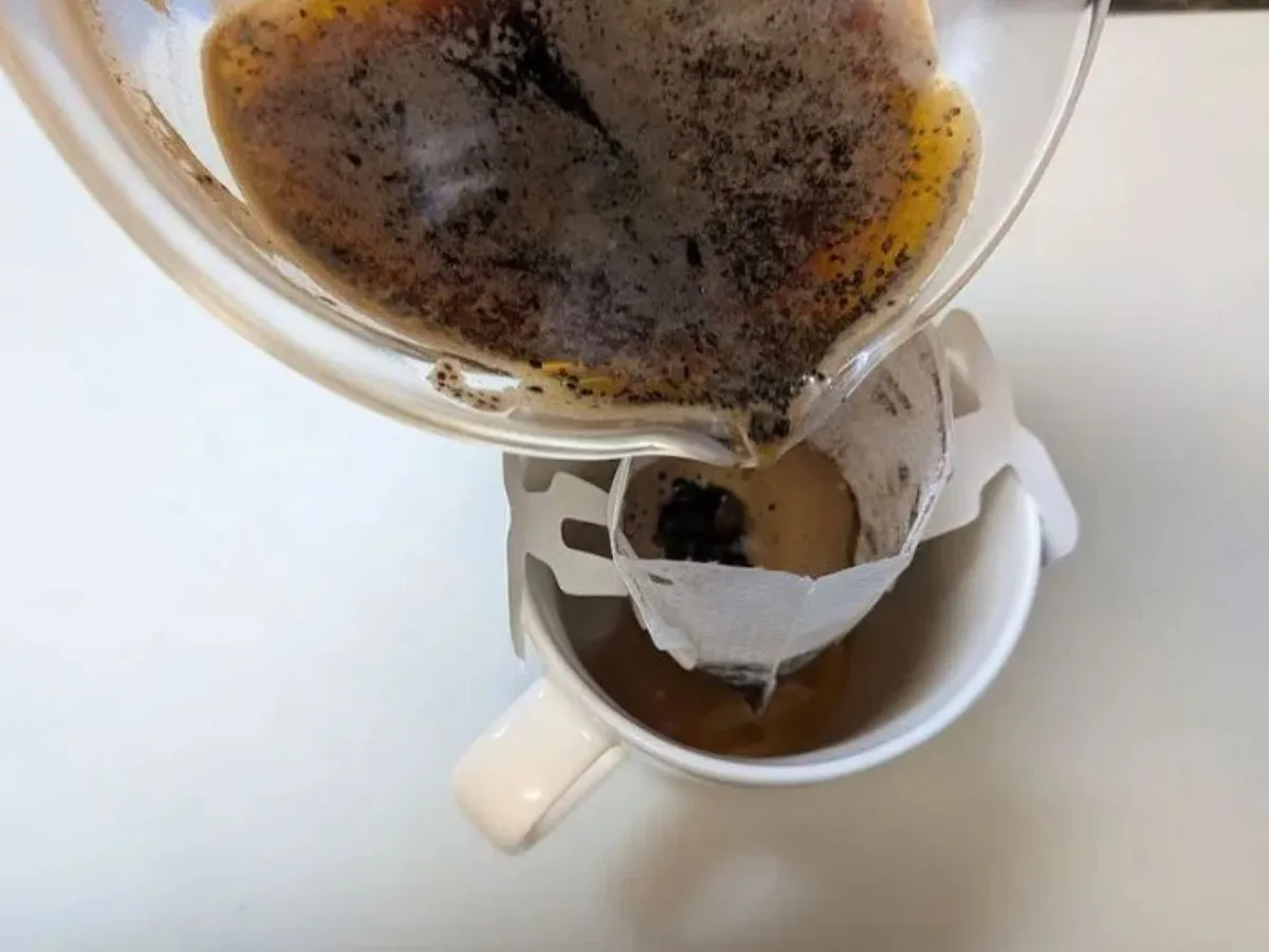 まずは、普段通りパッケージに記載された方法でコーヒーを淹れます。マグカップにドリップコーヒーをセットし、お湯を数回に分けて注ぎました。