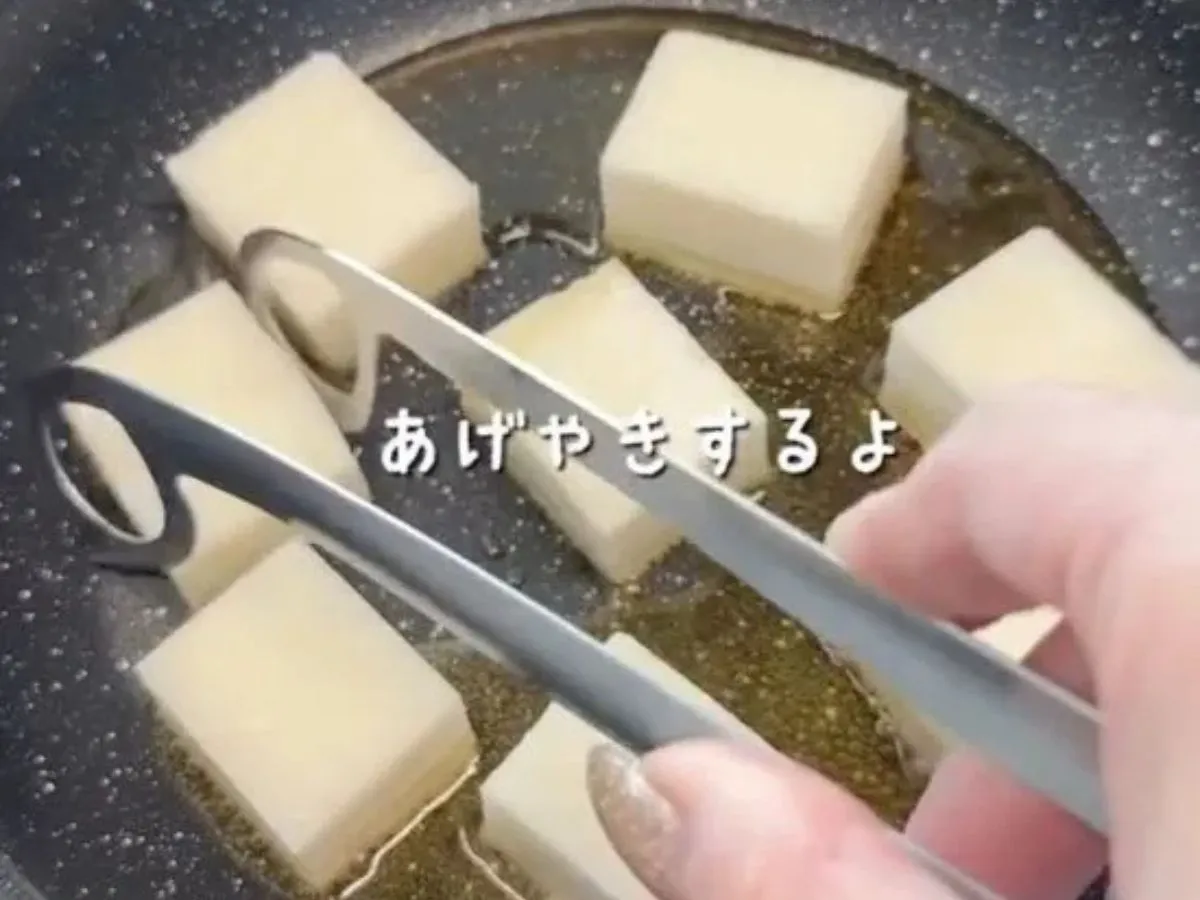 表面はカリカリ、中はモチモチとした食感を一度に味わえるのが、このレシピの魅力。崩れやすい揚げ出し豆腐とは違い、箸でつかみやすい点もポイントです。