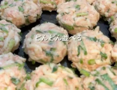 空気を抜きながらタネの形を整え、フライパンにどんどん並べてください。