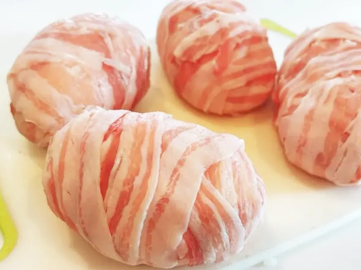 豚バラでくるくる巻いて… おにぎりの中身に「ボリューム満点」「子供も喜びそう!」