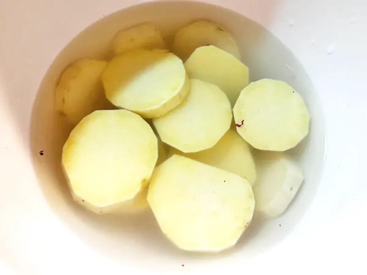 サツマイモは5分ほど水にさらしてアクを抜いておきます。