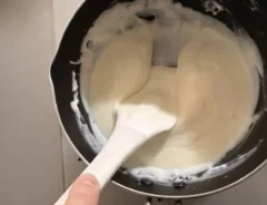 火が強すぎたり混ぜる速度が遅かったりすると、鍋底に片栗粉が沈殿してしまいます。滑らかに仕上げるため、ゆっくり丁寧に行うのがポイントです。