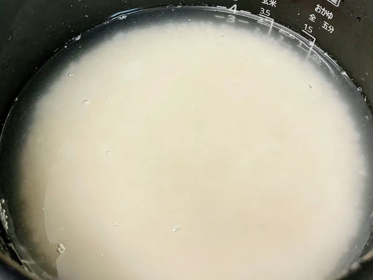 ステップ1:お米を研いで炊飯釜に入れ、調味料と水を加える