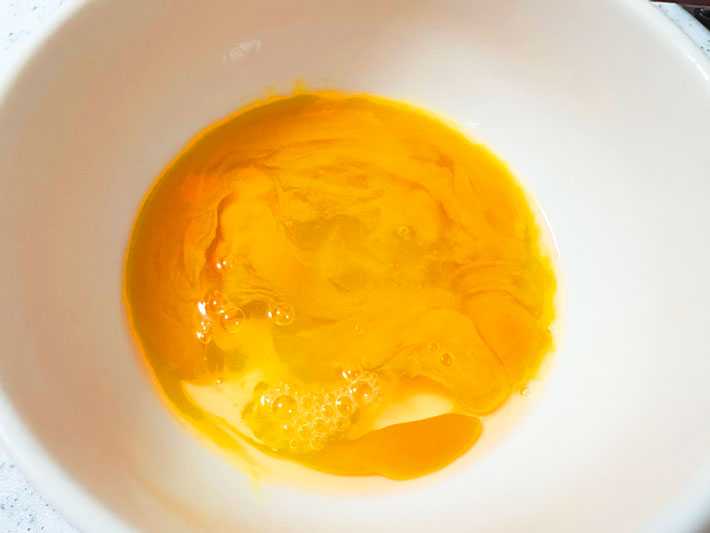 次に卵を溶きます。