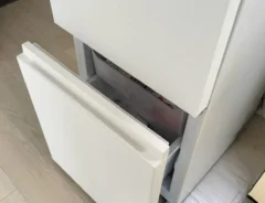 ついたてが並んでいるような仕切りスタンドを、キッチン下の収納に活用します。いつも倒れやすくて困っていたプレート類も、仕切りスタンドに入れて立てておけば倒れなくなります。