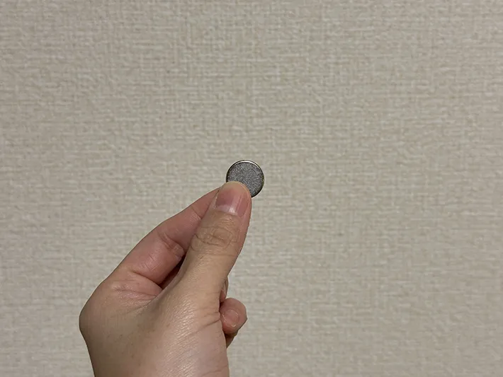 超強力というだけあり、ほかのマグネットと比べて吸着力が強いのが特徴。1円よりも小さい16mmのサイズです。