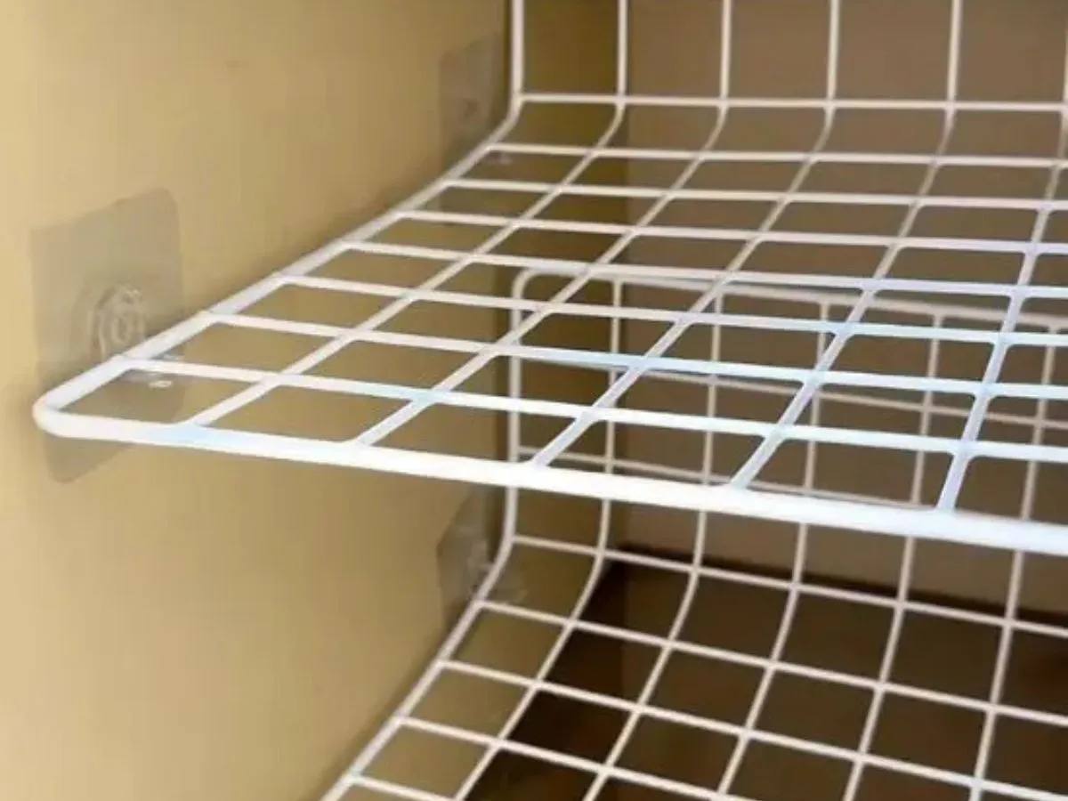 シールフックを4か所に貼りつけたら、その上にワイヤーネットをのせるだけです。ぐらぐらしないか確認して、水平に設置されていればOK。