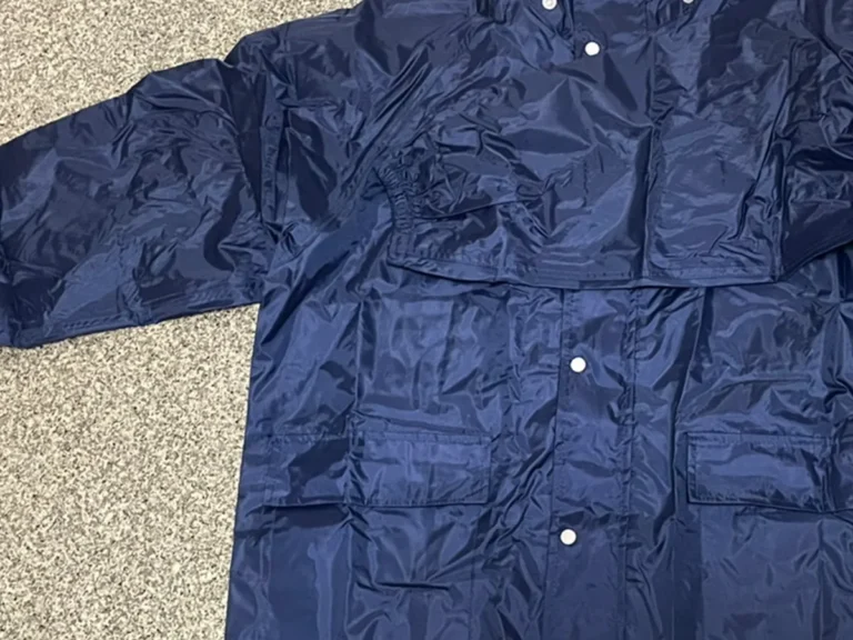 筆者が使ったレインコートは、上着とズボンが分かれたタイプのものです。