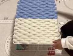 完成した絵本の棚は、見た目がかわいく、ふわふわとした素材感が子供部屋にぴったり。チャンキーヤーンの色を選べば、部屋の雰囲気や好みに合わせてアレンジできるでしょう。