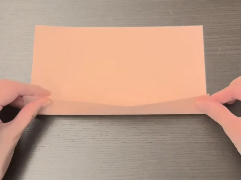 まず、紙を縦にして、長い辺を半分に折ります。