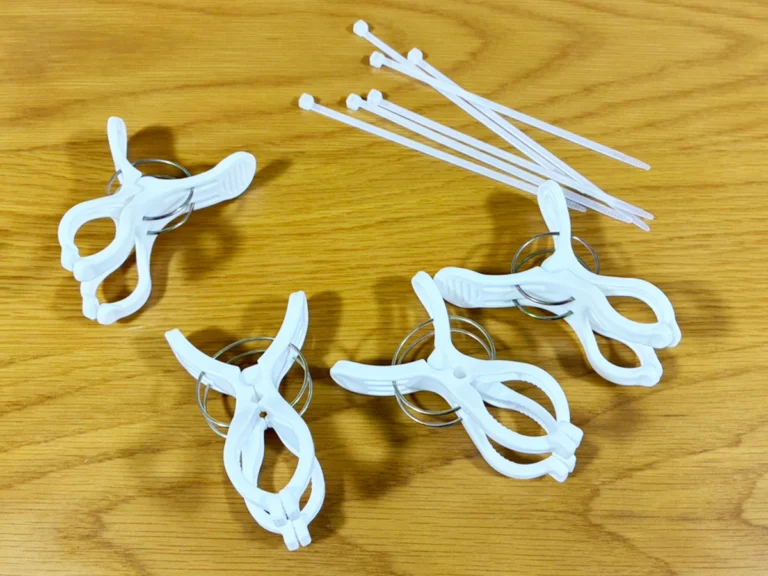 使用するのが、洗濯バサミと結束バンドです。