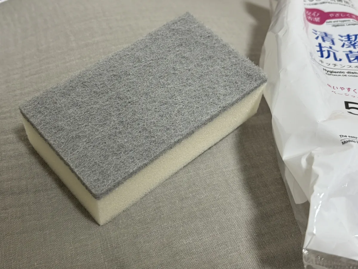 多少でも改善するため、まず手に取ったのが新品の台所用スポンジ。