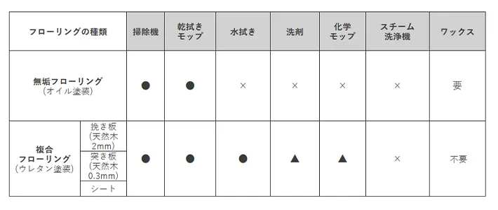 『フローリング総合研究所』では、それぞれの特性と注意点について、このように解説しています。