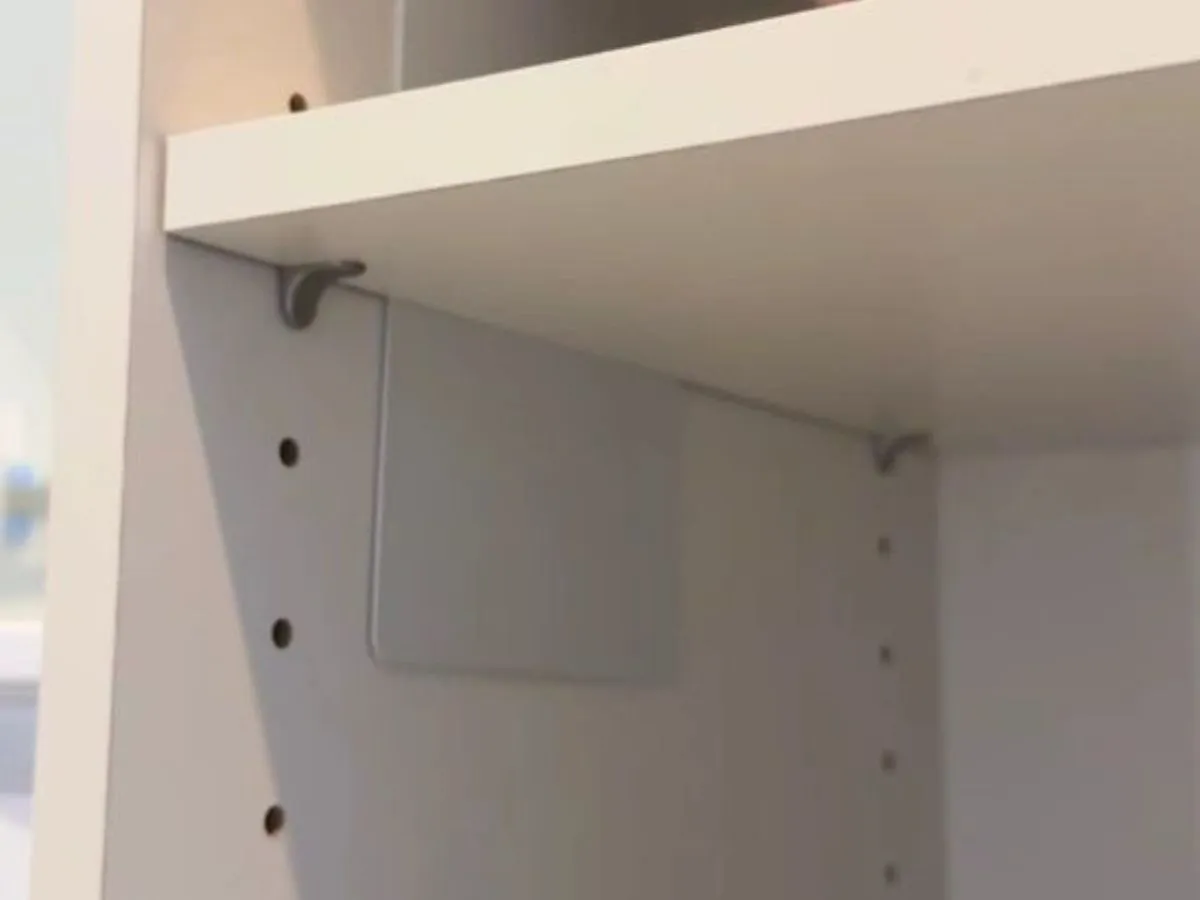 棚のすき間にブックエンドを差し込み、そこにマグネットを取りつけるだけで壁面収納の完成です。