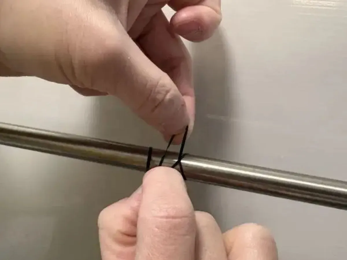 まず、ポリウレタンバンドを巻きつけ、上の輪に下の輪を通します。