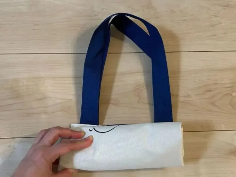 かさばりがちなエコバッグを、すっきりコンパクトにまとめる裏技を実際に試してみたので、写真つきで紹介します。