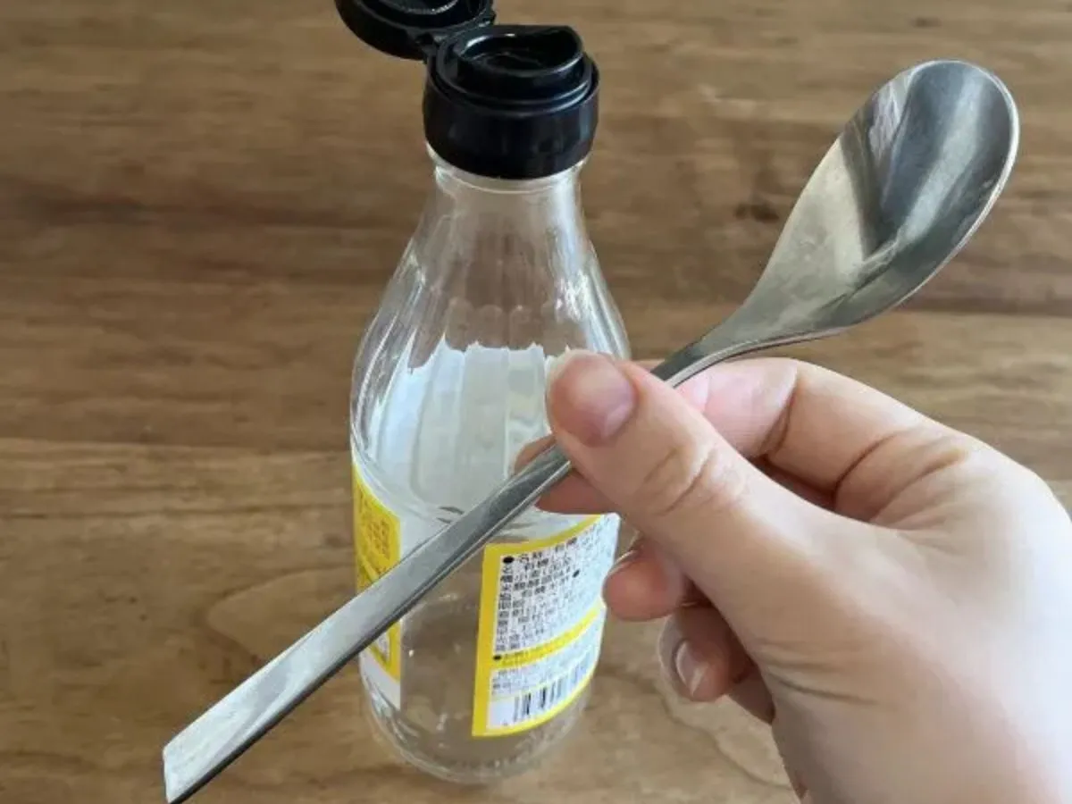これまでは、手で外そうとして途中でちぎれてしまうことがありましたが、スプーンを使うと力が均等に加わり、キャップが浮き上がってスムーズに外れるような感覚です。