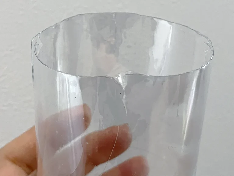 まず、ペットボトルの底から11cm程度のところをカッターで切り、2つのパーツに分けます。