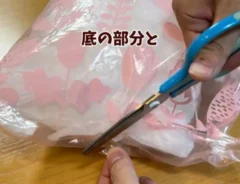 保存袋に袋を詰めたら、底部分を一部くり抜き、上部中央には小さく切れ目を入れます。