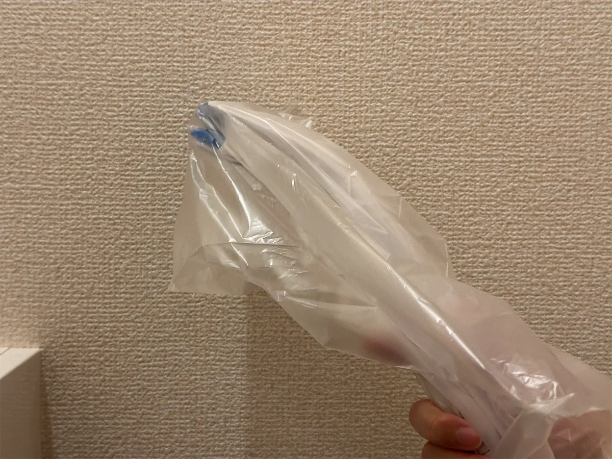 『スクラビングバブル 流せるトイレブラシ』を流したら、つけていたビニール袋を裏返して結び、ゴミ箱に捨てましょう。